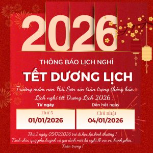 Trường Mầm non Hải Sơn trân trọng thông báo đến Quý phụ huynh và các bé lịch nghỉ Tết Dương Lịch 2026 cụ thể như sau: